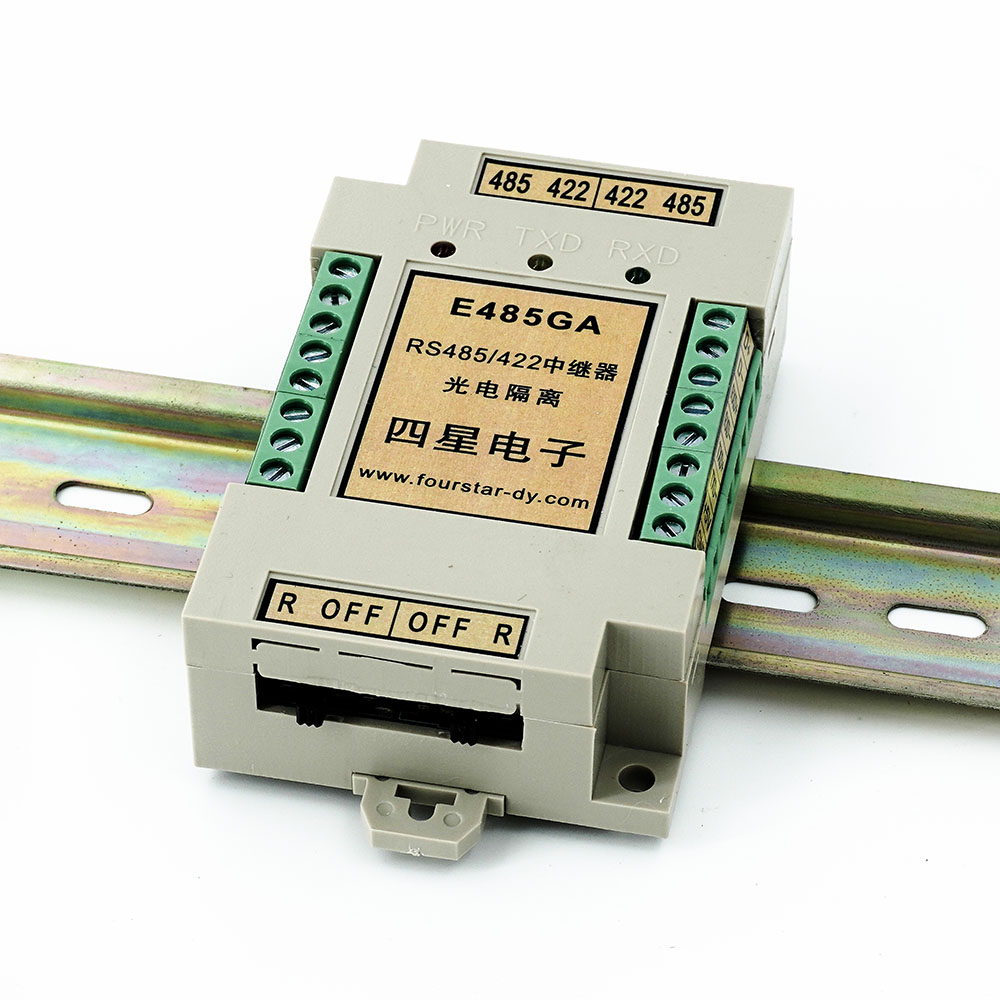 RS485和RS422通用光隔離中繼器,無延時雙向延長通信距離2公里(9600bps時),波特率0~500Kbps自適應(yīng),半/全雙工通用,也可作為RS422到RS485雙向轉(zhuǎn)換器,外接5V電源。外形為導(dǎo)軌安裝的工業(yè)結(jié)構(gòu),帶有通信指示燈。