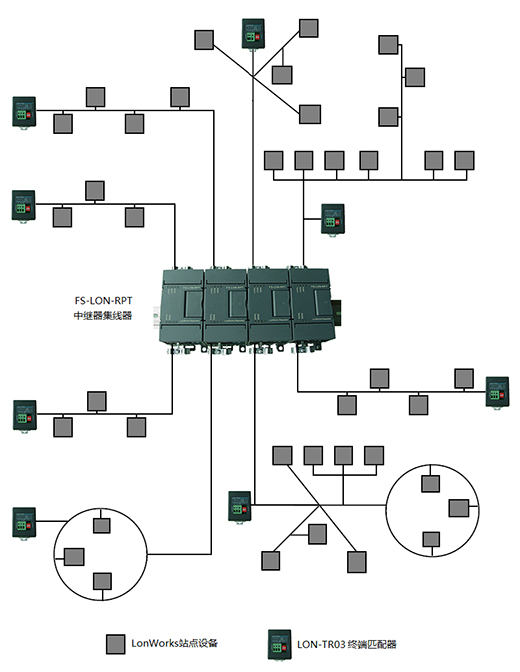 可擴(kuò)展數(shù)量 | 單個(gè)使用作為中繼器,N個(gè)可組合成2N口集線器。最多可以擴(kuò)展10臺(tái)FS-LON-RPT組合成20口集線器。 |