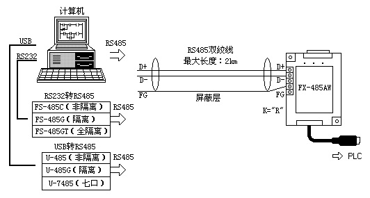 三菱FX0N/FX1N/FX2N/FX3U/FX3G...系列PLC編程口RS422轉(zhuǎn)RS485和RS232,光電隔離,防雷擊浪涌,最大通信距離2公里,標(biāo)準(zhǔn)導(dǎo)軌安裝。是FX-232AW、FX-232AWC、FX-232AWC-H的升級換代產(chǎn)品。