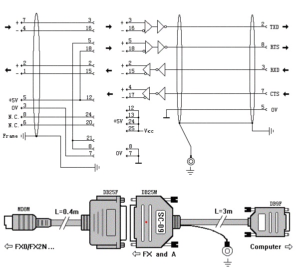 RS232接口的三菱PLC編程電纜,RS232/RS422接口,通用于三菱FX系列和A系列PLC,3米,紅色。