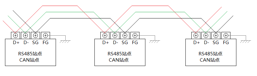 RS485和CAN總線電纜通常使用帶屏蔽層的雙絞線電纜,屏蔽層需接到各個站點的機(jī)殼地(屏蔽接地,符號通常為FG、SLD),這是屏蔽電纜接地的常規(guī)做法,很好理解,不用贅述。