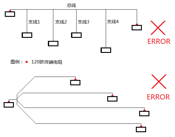 圖3-2 RS485和CAN常見錯誤支線