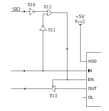 如圖2-4和圖2-5所示,許多IO-Link從站設(shè)備初始上電時(shí)為SIO狀態(tài),在IO-Link中繼器長(zhǎng)線收發(fā)器中如何按照主機(jī)的命令將其轉(zhuǎn)換成IO-Link通訊狀態(tài),喚醒脈沖產(chǎn)生電路和喚醒脈沖接收電路可以實(shí)現(xiàn)這樣的轉(zhuǎn)換:當(dāng)主機(jī)發(fā)出喚醒命令時(shí),其過流事件會(huì)在A模塊的U1的OL引腳產(chǎn)生一個(gè)低電平信號(hào),該信號(hào)被非門電路U4反相后輸出給單穩(wěn)態(tài)電路U9,由U9和R3、C2產(chǎn)生一個(gè)短暫的喚醒脈沖,經(jīng)接口CN2、長(zhǎng)線電纜、輸出給B模塊接口CN3,經(jīng)U18反相后輸入給或門電路U12,控制收發(fā)器U10的使能控制引腳EN為高電平,從而將主機(jī)的喚醒脈沖發(fā)送給連接在CN4上的IO-Link從站設(shè)備,將其喚醒轉(zhuǎn)換成IO-Link通訊模式。