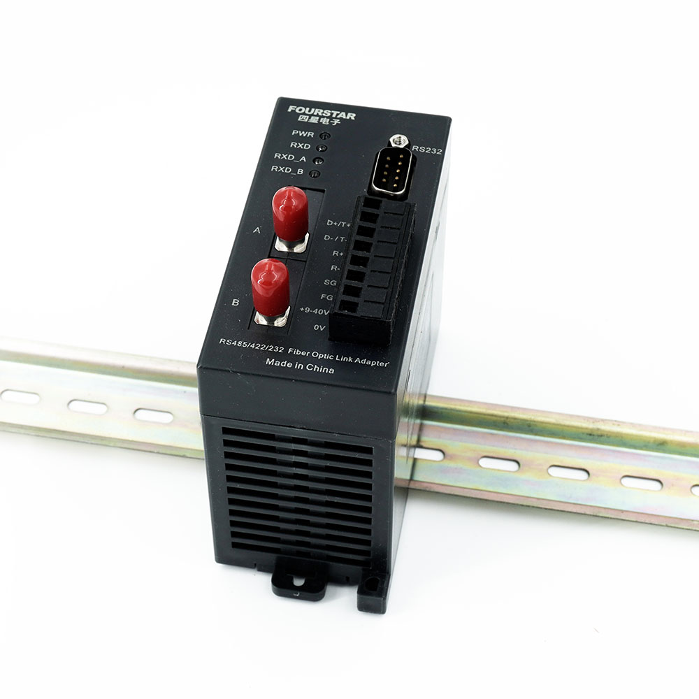 RS485/422/232光纖適配器,1電2光,單模單纖。