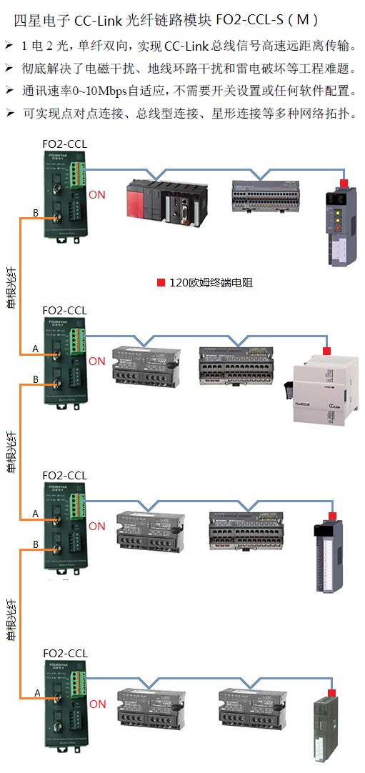 單纖雙光口CC-Link單模光纖鏈路適配器。1電2光,單纖傳輸,實現(xiàn)CC-Link信號高速遠距離傳輸,徹底解決通訊中的電磁干擾、地線環(huán)路干擾和雷電破壞等工程難題。可實現(xiàn)點對點、總線型、星形和混合型光纖網(wǎng)絡(luò)。數(shù)據(jù)透明傳輸,無需改動原有的通信協(xié)議和軟件,速率0~10Mbps自動適應(yīng),9~40VDC寬電壓隔離供電,適用光纖:單模 9/125、10/125、8.3/125um,光纖傳輸距離:0~10km,ST光纖接頭,-40~+85℃工業(yè)級工作溫度,DIN35mm標(biāo)準(zhǔn)導(dǎo)軌安裝。