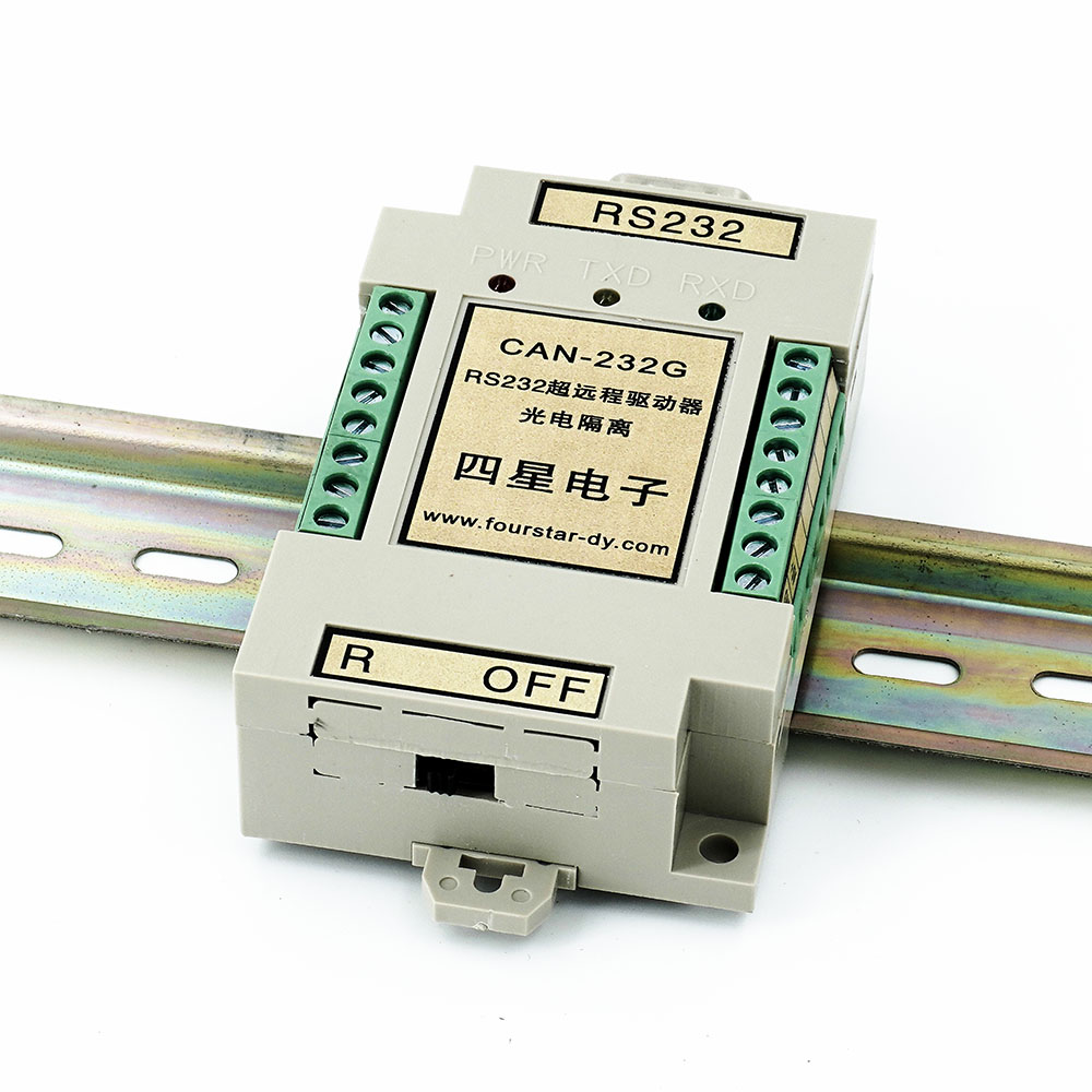 RS232光隔離超遠(yuǎn)程驅(qū)動(dòng)器,采用不改變RS232協(xié)議(軟件)的CAN總線驅(qū)動(dòng)器,只需二根線即可將RS232通訊距離延長(zhǎng)到10km(4800bps時(shí))、5km(9600bps時(shí)),支持110個(gè)RS232節(jié)點(diǎn)組網(wǎng),解決了野外使用中繼器加電源的麻煩。外接5V電源。外形為導(dǎo)軌安裝的工業(yè)結(jié)構(gòu),帶有指示燈。