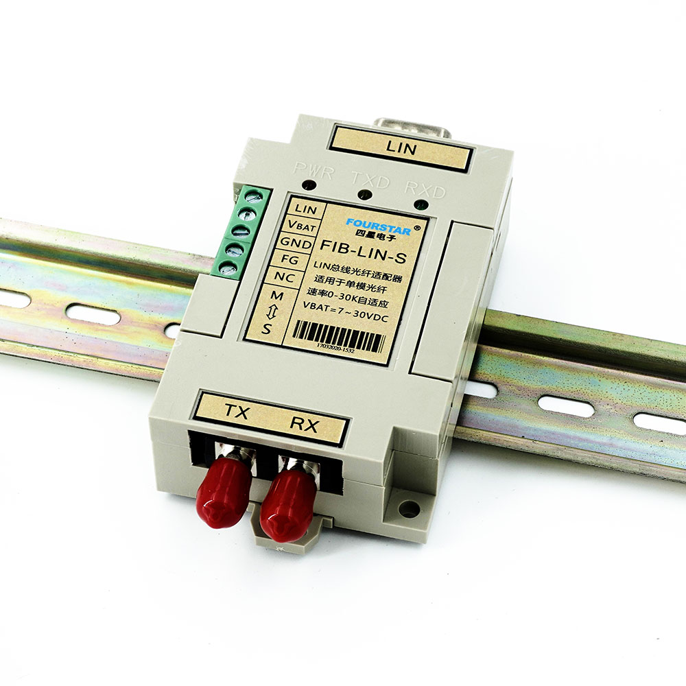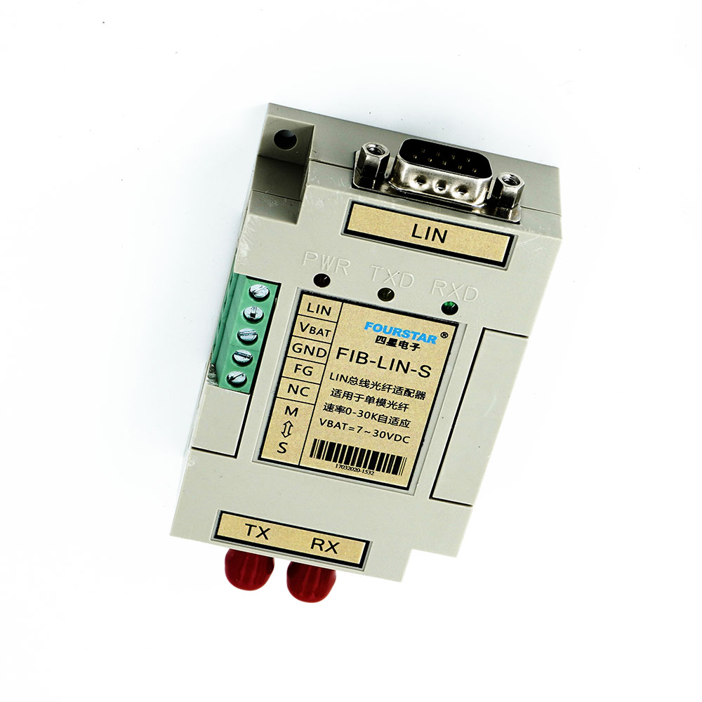LIN總線轉單模光纖適配器。速率1K~50Kbps自適應,數據透明傳輸,7~30VDC寬電壓供電,波長:1310nm,適用光纖:單模9/125、10/125、8.3/125um,傳輸距離:0~20km,ST光纖接頭,徹底解決通訊中的電磁干擾、地線環(huán)路干擾和雷電破壞等工程難題。產品同時具有接線端子和符合LIN標準的DB9M插座,-40~+85℃工業(yè)級工作溫度,標準導軌安裝。