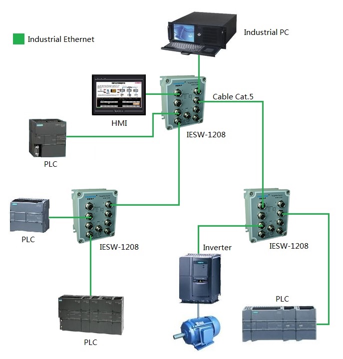工業(yè)以太網(wǎng)交換機(jī),百兆8口,M12接口堅(jiān)固型。