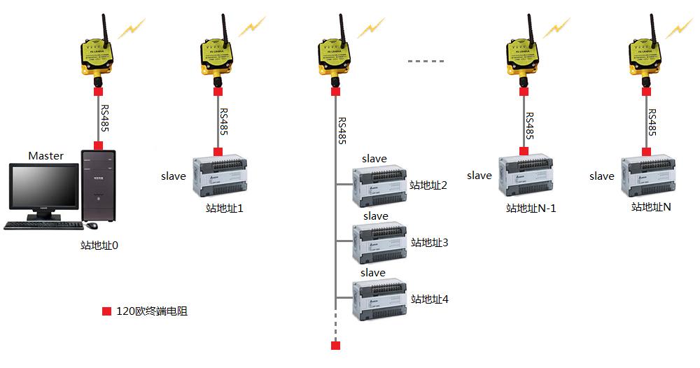 改造成LoRa無(wú)線傳輸如圖2所示,使用四星電子的FS-LR485A透?jìng)髂K,經(jīng)過(guò)簡(jiǎn)單設(shè)置后就可用無(wú)線方式替代原來(lái)的電纜傳輸,無(wú)需修改原設(shè)備的站地址、通訊協(xié)議和軟件等。
