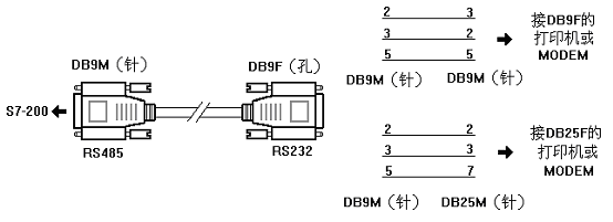 西門子S7-200PLC與串口打印機或MODEM(有線MODEM或無線MODEM均可)的連接采用一體化的PC/PPI電纜更便于安裝布線,由于打印機或MODEM的RS232串口為DB9F或DB25F孔座的DCE接口模式,所以需在PC/PPI電纜的RS232端做一個DCE到DTE的轉(zhuǎn)換,如下圖所示: