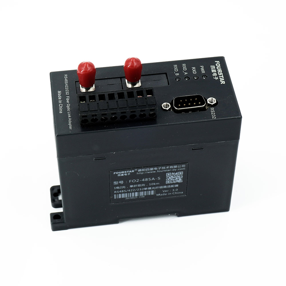 RS485/422/232光纖適配器,1電2光,單模單纖。