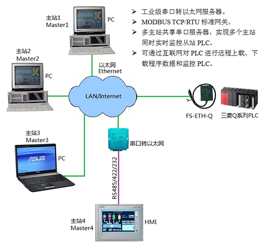 三菱Q系列PLC編程口轉(zhuǎn)以太網(wǎng)適配器。